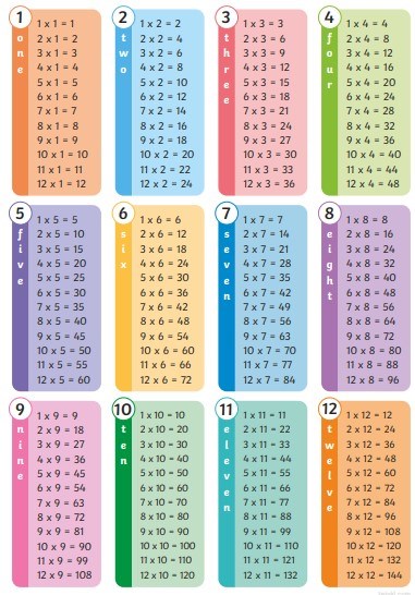 You would be amazed at how much of our maths at school and in real life is based on tables. It is important that your child knows all of their times tables (up to 12x12) by the end of Year Four.