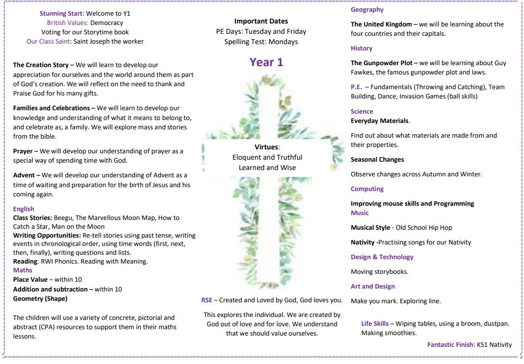 Year One will have P.E. every Tuesday and Friday. Please come to school on these days in your P.E. uniform.