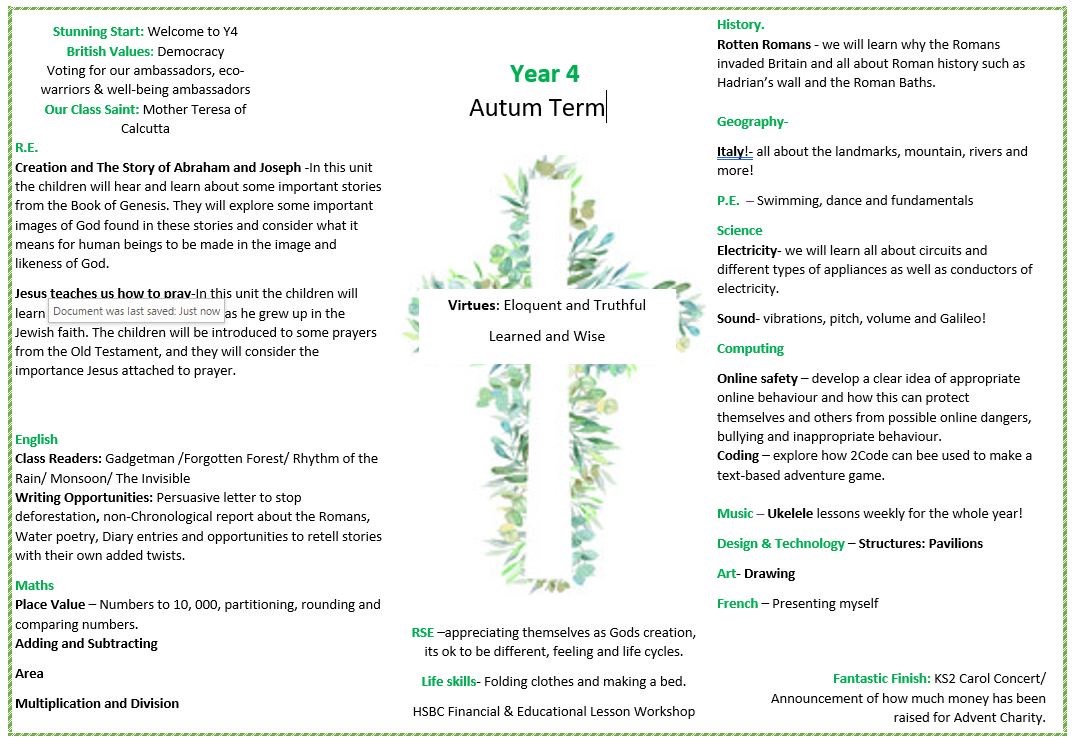 Year 4 will have their P.E. lessons on Tuesday mornings (swimming every other week) and Thursday afternoons this term.