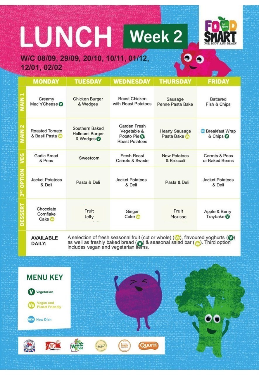Please see the Autumn menus below. Can we kindly ask that you are ordering your child's meals in advance to allow School Food United to provide your child with the meal of their choice.