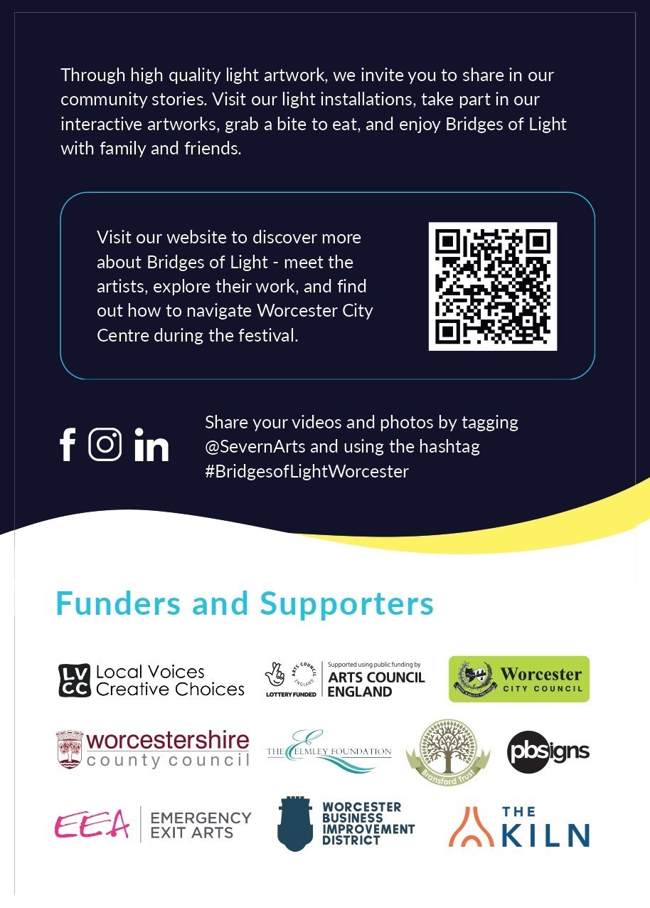 Find out more by following us on socials @SevernArts #BridgesofLightWorcester and visiting our website: https://www.severnarts.org.uk/listing/category/bridges-of-light